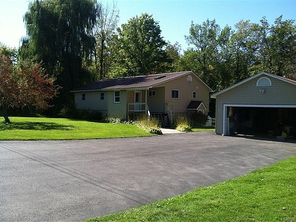 Beautiful raised ranch on a stunning 1.5 acre lot. Great location, close to 81 and Us Rte 11. Many updates inside and out, including a spa like bath with large heated jet tub. Open and bright kitchen and dining area and an over sized living room. Spacious two stall garage with additional finished room in back.