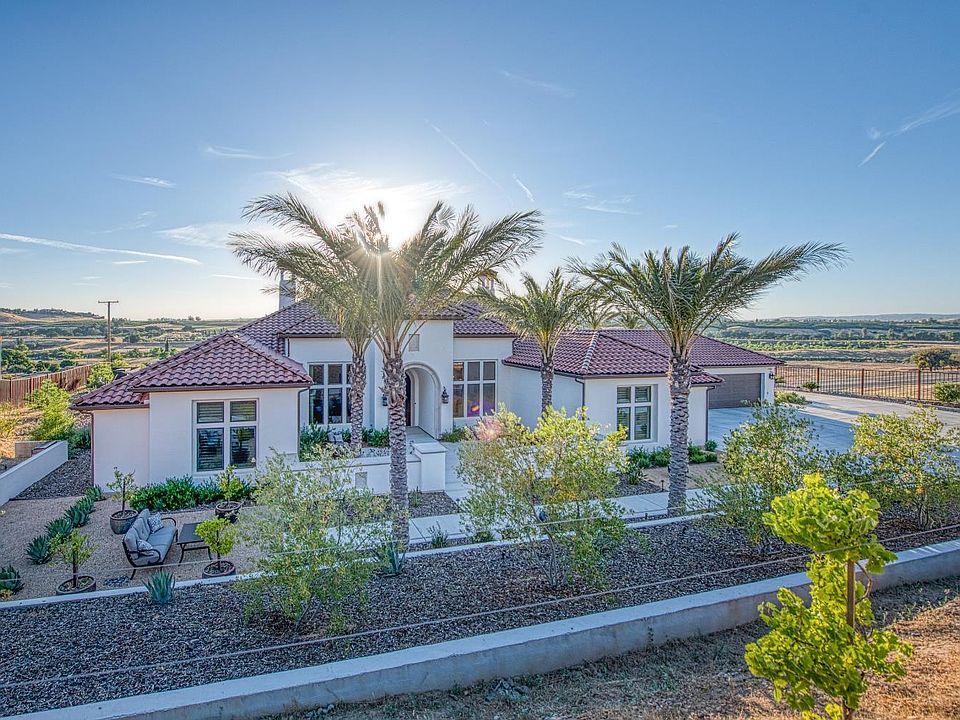 Perched above the San Joaquin River with sweeping views of the Tabletop Mountains, this 2023 custom build by Cornerstone Homes offers one of the most breathtaking settings in the Central Valley. Set on 2.5 gated acres, the 6,501-square-foot residence delivers seclusion and sophistication all within 5 minutes from Copper River. The architecture speaks of timeless beauty. White stucco walls, arched entryways, and wrought-iron accents reflect Santa Barbara style, while soaring 15-foot ceilings and artisan details define the interior. A reclaimed wood ceiling over a century old sourced from a California mission adds history and warmth, complemented by hand-stained moldings, handcrafted tile, and European oak floors throughout. This residence is more than custom it is truly one of a kind. Open, light-filled spaces flow seamlessly, with the family room, kitchen, and dining areas framed by graceful arches. A 20-foot sliding glass wall and expansive windows capture river and mountain views. The main kitchen is a culinary showpiece with Wolf appliances, custom cabinetry, quartzite surfaces, and masonry stone accents. A secondary kitchen with reclaimed wood shelving ensures effortless entertaining, while a masonry stone-framed wine cellar holds 270 bottles. Additional living spaces include a paneled study, an expansive game room with panoramic windows, and a six-car garage. Five en-suite bedrooms provide private retreats with spa-inspired baths the primary suite opening directly to the backyard oasis. Two powder rooms add guest convenience. The pool and heated spa overlook sunsets, the river, and the mountains. Expansive patios and a quartzite outdoor kitchen make gatherings effortless, while date palms, olive trees, and landscaping complete the Santa Barbara aesthetic. The home is built for today: Savant smart automation, whole-home audio, motorized shades, advanced insulation, and a 12.5 kWh owned solar array for net-zero energy. Though serene and private, the estate is minutes from Copper River. Families enjoy Clovis Unified schools, food lovers savor local dining, and outdoor enthusiasts explore nearby trails, lakes, and golf courses. State-owned land protects the setting ensuring views remain forever unobstructed.This estate is for the discerning buyer someone who values design, privacy, and the ability to entertain and retreat.With commanding views, timeless architecture,and resort-style amenities,it is more than a home it isCalifornia living, reimagined.