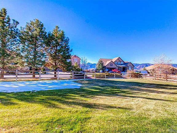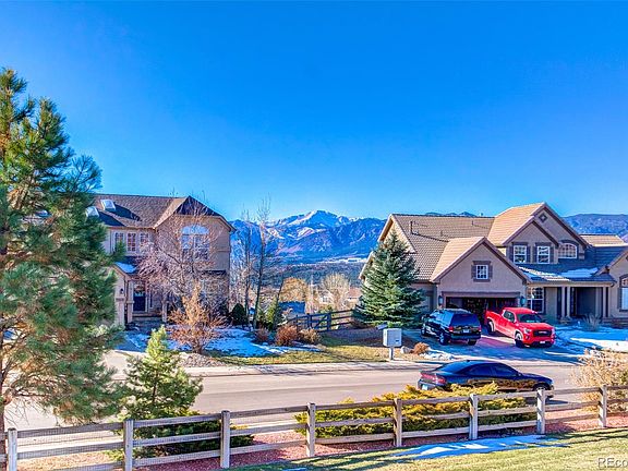 Absolutely stunning 3,400+ sqft home nestled on a .36 acre corner lot in award-winning D-38 schools, with panoramic Pikes Peak and Front Range views! A beautifully designed open floor plan, multiple living and dining areas, warm stone fireplace, rich hardwood floors, exquisite kitchen with slab granite countertops and stainless-steel appliances, luxurious master retreat with vaulted ceilings and spa-like bath, tremendous walk-out lower level with wet bar, and a composite deck and park-like yard with stunning panoramic peak views all showcase this inviting home. Additional home amenities include designer touches throughout, main level guest bath and tiled laundry room, ceiling fans, custom window coverings, and an impressive oversized garage with tremendous built-in storage cabinets and double workbenches. Offering comfort, refinement and luxury rarely duplicated, this stunning home is not to be missed!