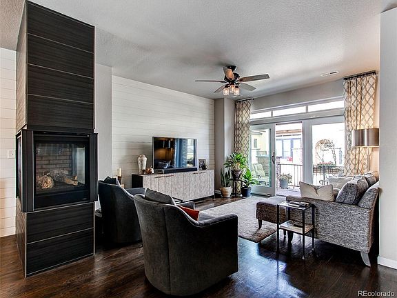 This gorgeous and modern home is conveniently located in the highly desirable Solterra Neighborhood. It's just minutes from C470, the mountains, Red Rocks, Bear Creek Open Space, Green Mountain and Downtown. There are hiking and biking trails everywhere and a truly amazing clubhouse and Infinity pool with beautiful mountain views. Hard wood floors flow throughout the main and upper level. Stunning with a beautiful kitchen, southern views, lots of east sun and more upgrades than a new home! The kitchen has quartz countertops, flat panel style cabinetry, undermount sink, glass tile backsplash, high end appliances, and open concept that is a perfect place for guests to gather. The living space is open and features dark wood flooring, a floor to ceiling shiplap wall with gas fireplace and patios on both sides of the home. The main patio on the front of the home is large and has a custom motorized modern shade that opens it up to the living room. The dining room is open to the kitchen and both the front and back patio which is a perfect place to sip morning beverages or relax watching the sunset after a long day. Downstairs is a finished basement space with a nice room for a game room/workout /art studio or office/flex space. Upstairs are 3 bedrooms including the master suite with extra large closet & dual vanity sinks. The closet space throughout the home is generous and anything else can fit in the oversized 2 car garage which has a new epoxy finish. Upgrades added are a shiplap wall in the living room, ceiling fans in every bedroom, finished basement, epoxy garage floor, water softener, powered solar shade. Enjoy nature and mountain views out the front door on the many trails, parks or the community spaces. This home will go quickly, hurry and schedule your showing.