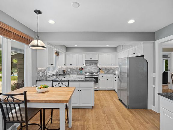 This elegantly updated walkout rambler is located on a quiet street and sits on a half acre lot, surrounded by beautiful mature trees. With more than $200k in improvements, including a stunning great room/heated workshop addition, nearly all new windows, updated kitchen and bathrooms on the main level, newer carpet, doors, water heater, landscaping, and much more, this home has a lot to offer. There are great restaurants, breweries, grocery stores, and other amenities close by and the back yard is frequented by deer, hawks, owls, and other wildlife, which makes this beautifully updated home a rare gem, offering the best of both worlds.