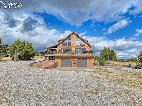 The Piñons at Turkey Canon Ranch is a peaceful, upscale rural community located just 15 minutes southwest of Colorado Springs on Highway 115. It’s close to Fort Carson, Florence, Penrose, and Canon City. The area offers colorful and breathtaking views of the Sangre de Cristo, Spanish Peaks, and Green Horn mountain ranges. This home sits on a mostly level, 5-acre lot with amazing 360-degree views. From every window, you can enjoy beautiful scenery. The home is equipped with a powerful ground mounted, 35 panel, 14.4KW solar panel system, providing ample energy. Other features include new exterior stucco and wood stain, a wrap-around deck, a new A/C condenser, a pellet stove for extra warmth downstairs, remote-controlled ceiling fans with dimmable lights, in-floor outlets, and LED lights throughout. And for the homeowners who enjoy travel, RV parking. At night, the Milky Way is visible thanks to the low light pollution, and wildlife sightings, from hummingbirds to deer, are common. The community borders BLM land, the Aiken Canyon Nature Conservancy, and the Fort Carson Military Reservation. HOA dues cover access to BLM land and include two paved walking trails in the neighborhood.