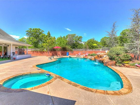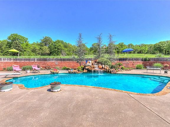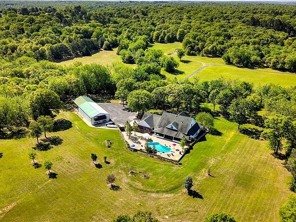 Tucked away in the hills east of downtown OKC, is a gorgeous 65 acre estate that horse owners dream of! The first 25 acres is perfect grazing pasture, while the back acreage is wooded with wide trails cut out, perfect for trail rides. On the SE corner of the property, there is an area with a well, septic and electric, where a barn or second home could be built. The main home has an open floor plan that looks out to the patio where you will find a heated, fresh water pool, waterfall and hot tub. This well-maintained home has a huge list of amenities, including Geothermal HVAC system, heated marble floors, storm shelter, surround sound, and built-ins throughout. The downstairs features a master suite that connects to the office, large kitchen with kitchenette and a formal dining room. The upstairs has two bedrooms, bathroom and a balcony that looks over the living room. The adorable guest house and 100'x30' shop are detached and includes a kitchen, bath and combo living/bed. Call now!