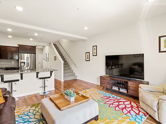 Fantastic like-new townhome in desirable North Bethany! This home features one of the largest floorplans in the area with a spacious 3 bedrooms, 2.5 baths, with family/bonus room on top floor, granite slab in kitchen, all included s/s appliances, W/D, beautiful faux-wood floors throughout main level, A/C for those hot summer days, darling front porch & back balcony for your outdoor enjoyment. Tandem spacious 2 car garage, minutes to Nike, Intel, top schools, shops, restaurants, parks & more!