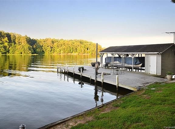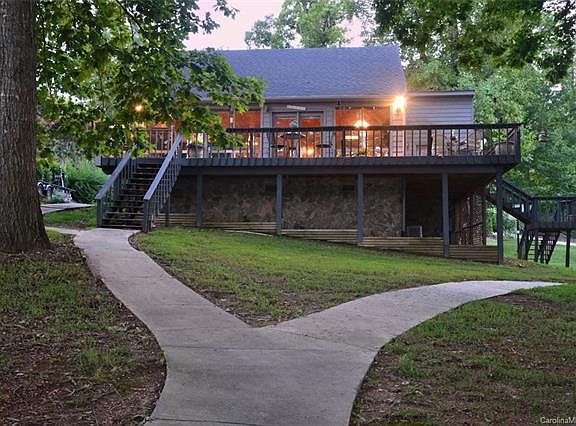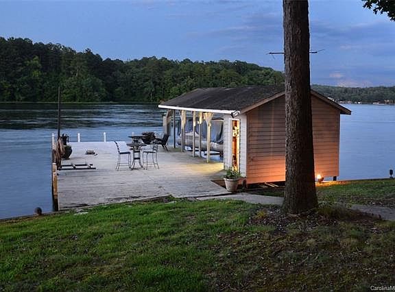 Dynamic Setting! This 3-bedroom, 3-bath waterfront is a classic on Lake Tillery! This home features an open floor plan with hand laid stone fireplace, lots of glass on waterfront of home. Master on main level. Spacious rooms, finished basement. Located in large cove with extra nice boathouse and landscaped lawn.