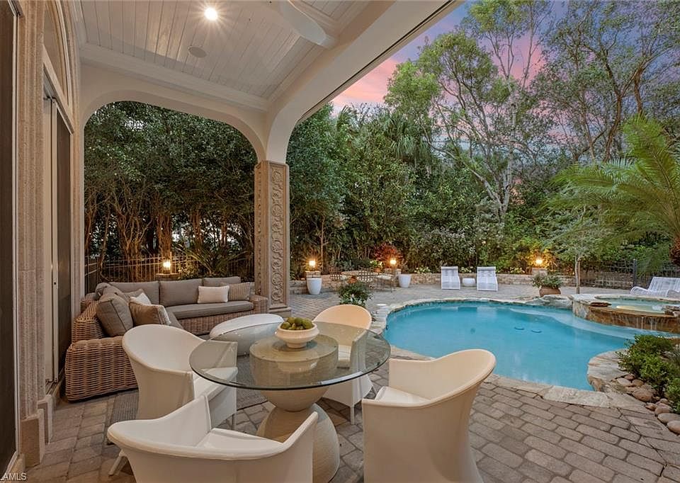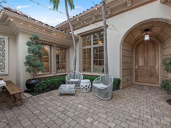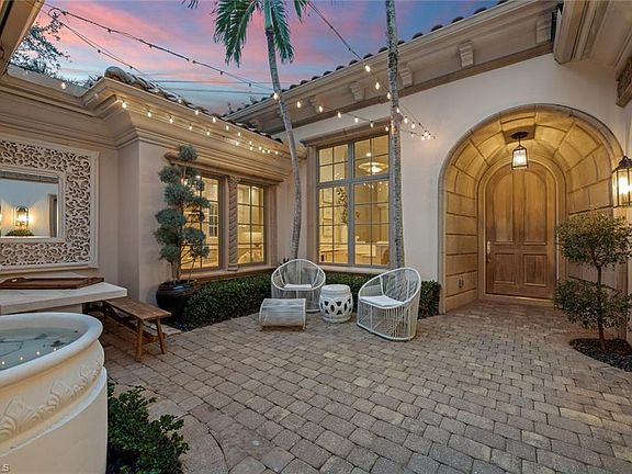 Experience the epitome of luxury living in Villoresi, an exclusive enclave in the prestigious Mediterra community. Beyond the enchanting courtyard entry, this residence unveils a reimagined French country aesthetic that elevates every detail to evoke a sense of timeless romance. Boasting over 2,200 sf. with 3 bedrooms and 3 baths, exquisite designer detail and architectural elements are showcased throughout. Interior has undergone a remarkable transformation with carefully selected designer Finishes and Furnishings. Upon entry, you're greeted by volume ceilings and a great room with sunlight filtering in. Entertain guests at the custom bar equipped with a wine cooler and under-counter refrigerator. The gourmet kitchen is a culinary delight with JennAir appliances, Taj Mahal Quartzite countertops, new cabinetry & elegant dining nook. The Floorplan seamlessly connects the expansive private lanai, featuring heated pool & spa, outdoor grill, and inviting lounge areas, ideal for both relaxation & entertaining The master suite is a blissful sanctuary with custom closets, dual vanities, soaking tub, & a spacious walk-in shower. Embrace the lifestyle you deserve...schedule a showing today!