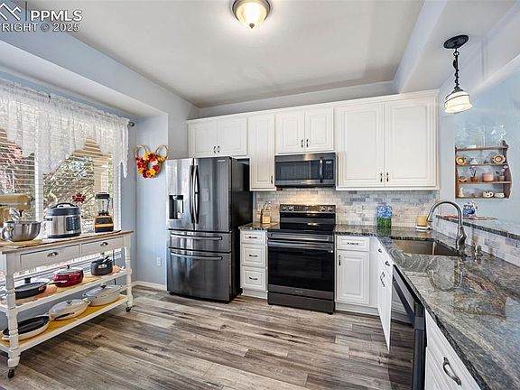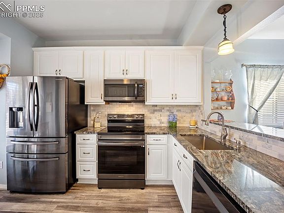 VIEWS VIEWS VIEWS!!! This beautiful home has breathtaking views of Pikes Peak and the Cheyenne Mountain Range. Sit back and relax on your main level deck to enjoy these views. For even more relaxation, take in the scenery in your very own Spa Hot Tub located under the deck for privacy. When you walk in this home you can feel the warmth and charm. On the Main level you will find the Kitchen with Newer Kitchen Cabinets, Samsung Appliances and Granite Counter Tops. The living room has great views of Pikes Peak from both back windows. Enjoy a night by the fireplace, this Gas Fireplace heats up the home very quickly. The bedrooms are on the upper level with a huge master suite with brand new Vanity and Mirror. The other two bedrooms are nice sized with a full bath to share. As you walk down to the basement, you will notice there is a lot of light where you find another living space with Gas Fireplace, one bedroom and one bathroom. Walk out onto the lower deck and enjoy a night by the firepit. This home has it all in a great location only minutes to shopping, restaurants, and coffee and a Playground for kids. You will have plenty of space to store your vehicles or toys with the 3 car garage. Come see this home before its gone. Its a well maintained home with all new paint on interior walls, doors, and Trim throughout. New Luxury Vinyl flooring and New Kitchen Cabinets and Countertops. The Hot water heater was replaced in 2021 and a New roof is being installed this week along with new gutters. Also there is new Sprinkler Systems with new Meter.