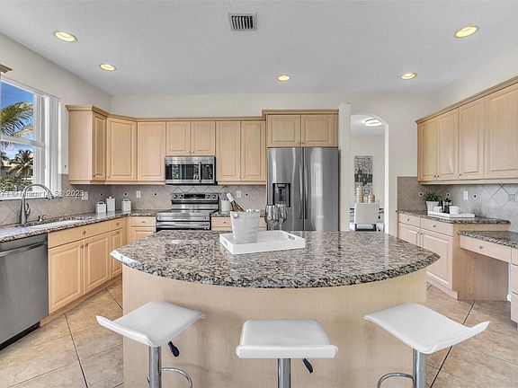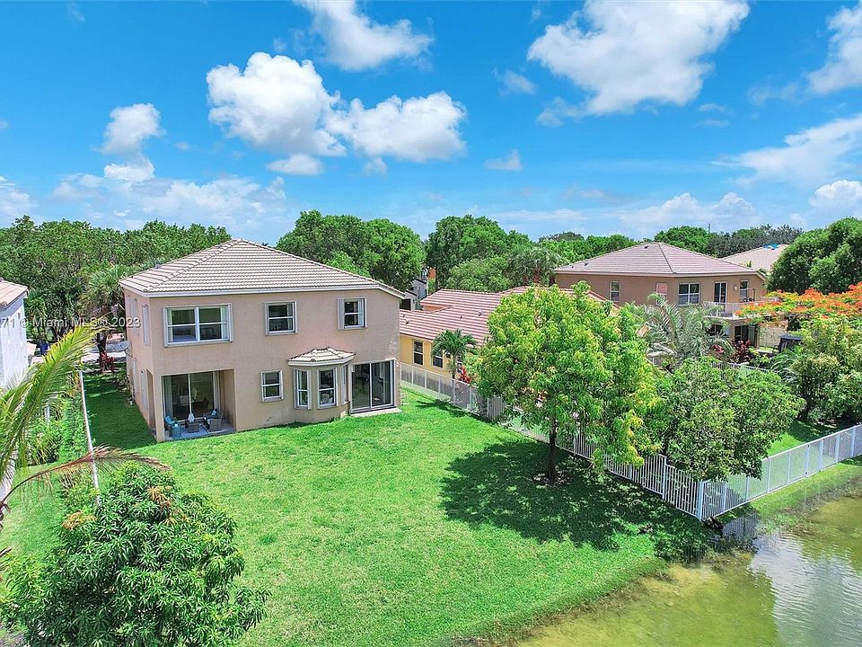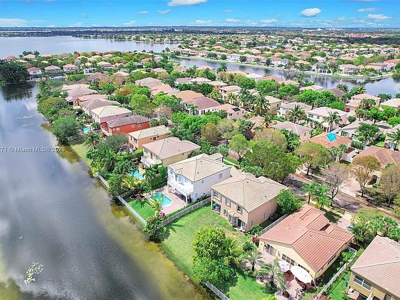 Super upgraded waterfront 5 Br, 2.5 Bath hm in resort-like Riviera Isles of western Miramar. Double manned gates, big pool w/ water fall feature, clubhouse fitness center, much more. Gourmet kitchen, granite cnters, new stainless steel appliances, walk-in pantry. Water views fm most of home, covered patio, partially fenced yard, delicious mango trees bearing fruit now! Huge primary suit -5th bedrm delivered as a builder option spacious sitting / entertainment area in primary bedrm. Easily be converted to base 5 BR but few would want that. Tremendous primary bath, spa jack and Jill double-sink 2nd bath upstairs for other brms. New wood flooring, newer A/C, water heater. Accordion shutters. Close to great Broward County schools, shopping, parks and I-75 for easy commutes in every direction.