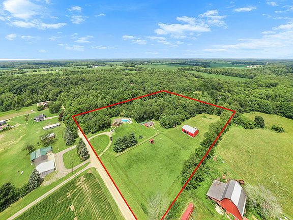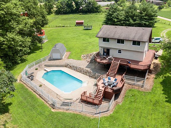 Welcome to your next home in Vandalia, Michigan! Nestled on 13 beautiful acres, this 2-story residence features 4 bedrooms, 2.5 baths, and a walkout lower level. The great room boasts a cathedral ceiling with wood accents, creating a warm and inviting atmosphere. Enjoy the outdoors with an inground swimming pool and expansive deck, perfect for entertaining. The property includes 2 large outbuildings and a pasture area, ideal for hobby farming or storage. This serene and spacious retreat offers the perfect blend of comfort and country living. Don't miss out on this unique opportunity!