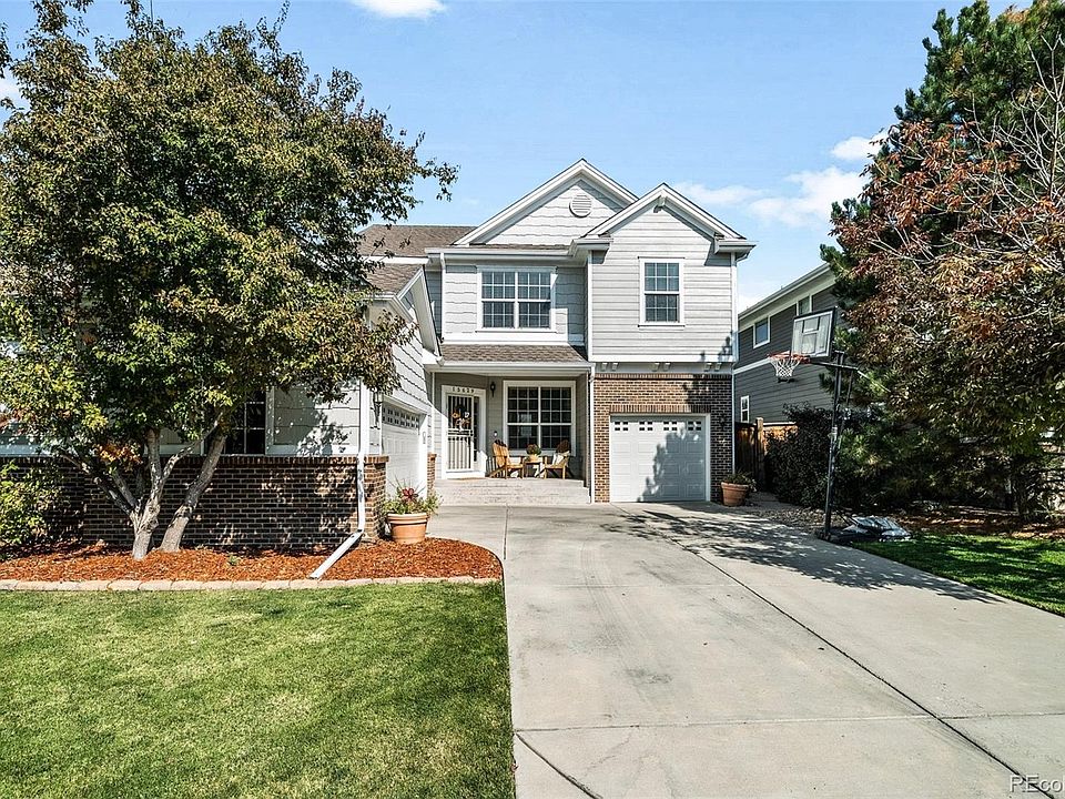 Welcome to this beautiful 4 bedroom, 3 bathroom, walk-out home in the Newland Meadows neighborhood. Conveniently located and in close proximity to I-25, E-470, the DTC, Downtown Parker, Park Meadows and light rail access. This former model home offers many designers features including upgraded cabinets, granite counter tops, stainless steel appliances, hardwood floors and custom tile work throughout. High volume ceilings with wood beams, accompanied by large windows that let in an abundance of natural light, fill the main living area with an open and airy feel. Upstairs offers a spacious Master bedroom with a 5 piece master ensuite, along with 2 secondary bedrooms and an additional dual vanity full bathroom. You will find an additional bedroom on the main level with a ¾ bathroom next to it, perfect if someone is needing a main floor living option. Enjoy relaxing and playing in this beautiful backyard with a new stamped concrete patio where you can set up a place to eat, relax, and grill up your favorite meal. Other features include seperate office with built in cabinetry and 2nd fireplace, laundry room with soaking tub and added cabinet storage space, formal dining room and the list goes on. Come and check out this fabulous home today.