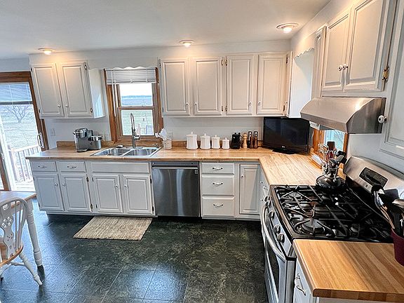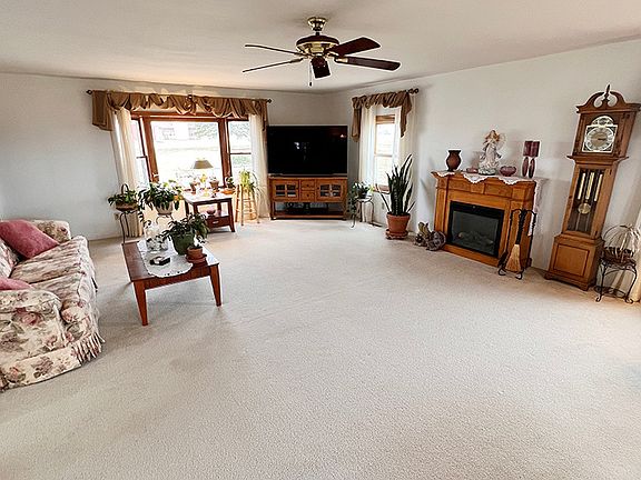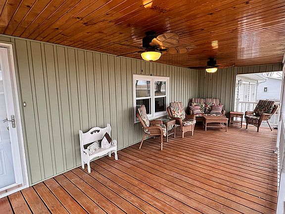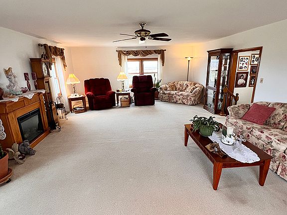 This charming property boasts 3 bedrooms and 2 full baths, huge living room, spacious dining room, large kitchen, a heated garage plus the addition of a woodworking filter adds to the appeal for hobbyists or professionals seeking a dedicated space for their craft. Situated on over one acre of land, this home provides beautiful landscaping and room for outdoor leisure activities. Two large sheds offer additional storage space or potential workshop areas for the handy homeowner. With thoughtful amenities and abundant space both inside and out, this property truly embodies the essence of fine living in a peaceful setting. Don't forget these bonuses: newer siding, newer windows, newer deck, newer fans on front porch, 200 amp service, steel beam in basement, root cellar, newer appliances, electric fireplace stay, extra drywall stays to finish basement wall if desired and blacktop driveway.
