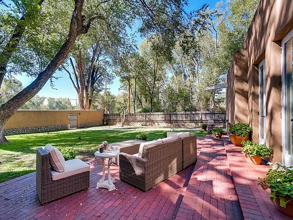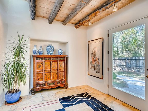 Gorgeous house in a fabulous location. Just across from the famous Tesuque market this beautifully remodeled light and airy property site on nearly half an acre of pristine lawns and gardens with generous shade from the mature giant cottonwood trees that adorn the property. Outstanding finishes combine a soft contemporary feel with old world charm. The chef's kitchen has been masterfully upgraded to include new counter tops and refinished cabinets. the high ceilings make for great art hanging spaces on the walls in the main living areas, which also open up the outside to various portals through the French doors. Attached to the main house via a breezeway is an office/studio/ guest space with 3/4 bath and pull out bed. All in all a wonderful place to call home.