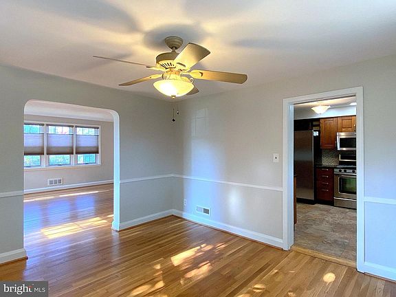 Beautiful well-kept end of group located in coveted Loch Raven Village community. This home features 3 bedrooms, 2 full bath, hardwood floors, two functioning fireplaces, premium high efficacy HVAC system and water heater, and is freshly painted throughout. Recently renovated upper bath and lower level is 2 years new. This spacious home offers a recently renovated kitchen with stainless steel appliances, quartz counter tops, and plenty of kitchen cabinet space for storage. The lower level is finished with a functioning fire place while also offering an unfinished portion for laundry and ample storage. The large rear fenced yard offers a patio area, a 1 year new premium model 8x12 Amish built storage shed, and parking pad. This home shows true pride of ownership both inside and out. Easy to show.