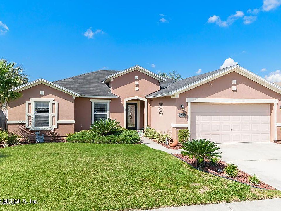 Seller has accepted an offer waiting on last intl. Welcome home to this full stucco Florida beauty. Open floor concept with high ceilings. Large food prep area and bar for entertaining. Split floor plan master retreat has electric fireplace for warm cozy evenings. Master bath has extra large walk in shower. Extra room off the back can be used as gym or home office. step outside to fully fenced yard w large patio & pergola to entertain. Shed will convey to keep lawn equipment. Terrific neighborhood close to the 295 exchange for quick commute to naval bases or downtown.