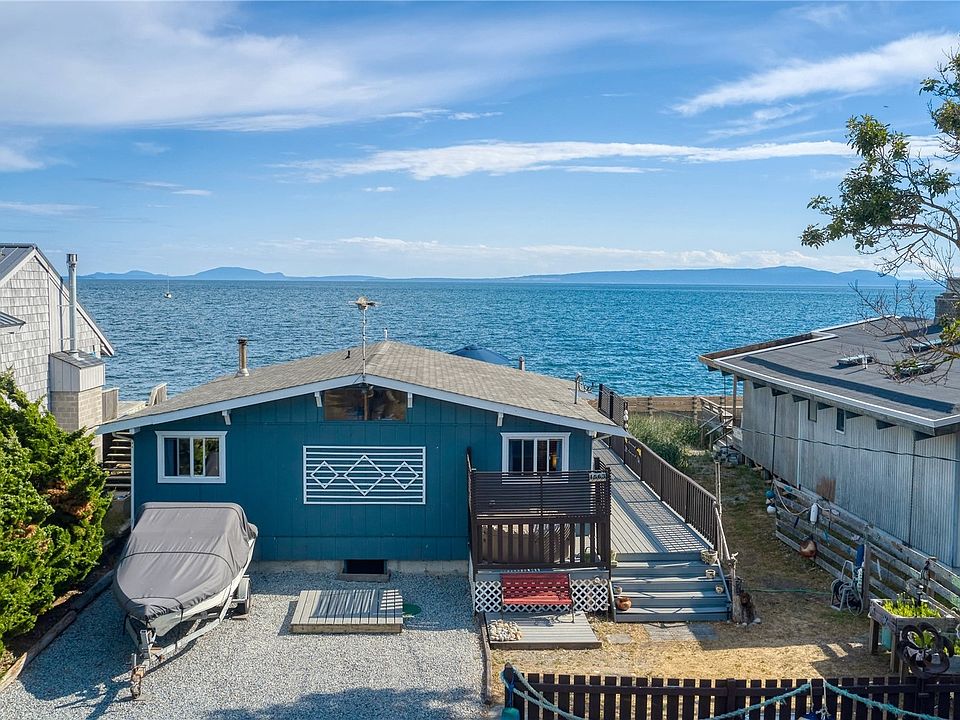 South-facing waterfront cedar cottage located on desirable Edwards Dr with stunning panoramic ocean views. This property offers front-row seats to watch the boats heading out to sea and whale watching. This well-maintained cottage exhibits exceptional unobstructed views of the San Juan Islands and Mt. Baker and features 3 beds, 1 bath, and a detached shed. Enjoy the wood stove on a brisk summer evening or the A/C on a hot summer day. Bright open-concept living area with vaulted ceilings that features an updated kitchen, large windows with panoramic vistas, and sliding doors onto the expansive deck space. Don't miss out on this legacy property rarely offered!