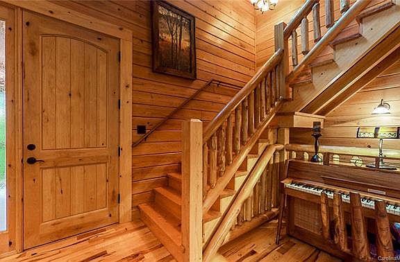 This custom built, Tidewater Cypress log home is one of a kind. A floor-to-ceiling stacked, native stone fireplace graces the family friendly, open great room. A large, fully equipped kitchen with cypress cabinets, granite counters and a beautiful sinker cypress bar (straight from Louisiana) keeps the chef involved with the crowd. A private, spacious master suite with its walk-in closet & beautiful tiled bath shares an open loft doubling as an office and/or media area on the upper level. Two guest bedrooms enjoy the main level, and a bunk room suite shares the lower level with the family room. A wrap-around porch with Ipe Decking is a great place to enjoy the third native-stone fireplace while watching nature change during all four seasons. Enjoy the benefits of a private 640 acre private lake and the private community of Lake Toxaway Estates. Minutes from LTCC and the Greystone Inn; cradled in the arms of multiple state and federal parks, this is a very special place to call home.