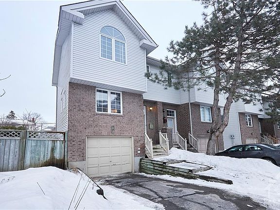 Attention Investors or First Time Buyers! This semi-detached unit is tucked away on a quiet cul-de-sac surrounded by mature trees. The main floor features good-sized combination living/dining room with gas fireplace, bright kitchen, pantry and 2 piece bath. The skylight in the stairway leading to the 2nd level lets in loads of l light. The primary bedroom has vaulted ceiling, walk-in closet and door to main bathroom. Two more bedrooms and 4 piece bath are on the second floor. The finished lower level has a multi-purpose room, storage room, utility room and entrance from the garage. Located on several bus routes with Algonquin and Carleton U a short ride away. Roof replaced in fall 2021, appliances are in working order but are included in 'as is' condition, furnace and AC are older but have been well-maintained. Tenant is month to month. **Annual fee is for snow removal. All other common area maintenance/replacement costs are split between owners as per the owners agreement.**