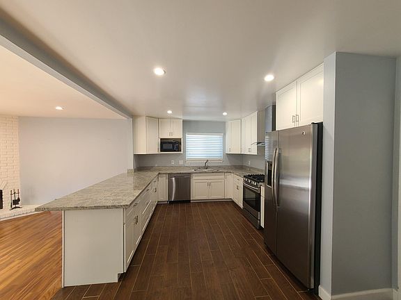 Beautifully remodeled single level home in the Pleasant Valley area of Pleasanton. This spacious family home offers 1,900 sqft. of living space with 3+ bedrooms, 2 bathrooms, and a two-car garage. An open floor plan creates a welcoming atmosphere for entertaining and daily life. The kitchen comes fully equipped with granite counter tops, oversized sink and stainless steel appliances, including gas range/oven, refrigerator and dishwasher. Flooring consists of gorgeous laminate floors throughout. Bedrooms include generous closet space and are perfect for getting a good night's sleep. The master suite has generous closet space, bonus room and roomy shower! The backyard features a patio and is perfect space for grilling. Additional amenities: hookups for washer and dryer, central A/C, and a fireplace. This ideal location is close to award winning schools, hiking trail and minutes away from shopping and fine dining in Downtown Pleasanton. Convenient commute access to I-580, I-680, ACE Train and BART. This amazing house is a great opportunity for you! INFORMATION IS DEEMED RELIABLE, BUT IS NOT GUARANTEED! 1 year lease. Tenant responsible for all utilities. Wilson Property Management application fee: $45 per adult. No pets allowed. No smoking. Security deposit is based on excellent credit and references. An additional deposit may be required from applicants with poor credit and/or references.