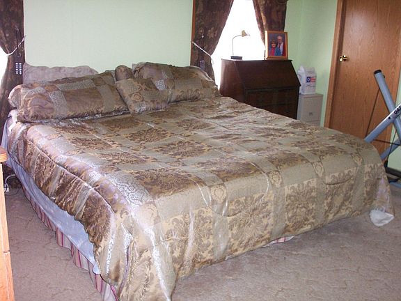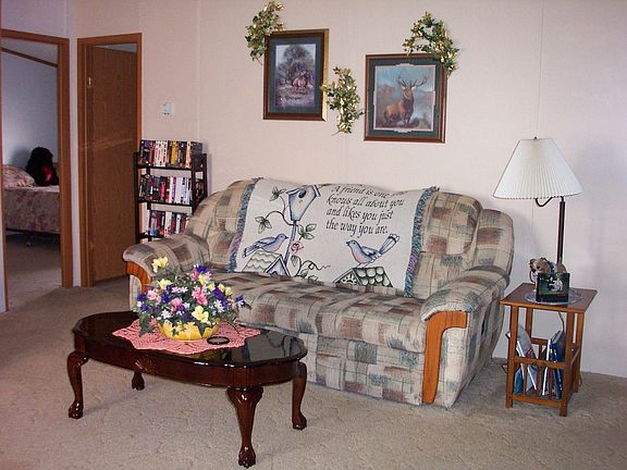 3 BR , 2 BA manufactured home situated on 10 acres. There's a finished 2 car detached garage built in 2002 plus a 25X25 pole barn constructed in 1998. Enjoy the large garden area. Master bath has a Garden tub & shower. Ceramic itle in the kitchen, utility room and the 2 bath rooms.