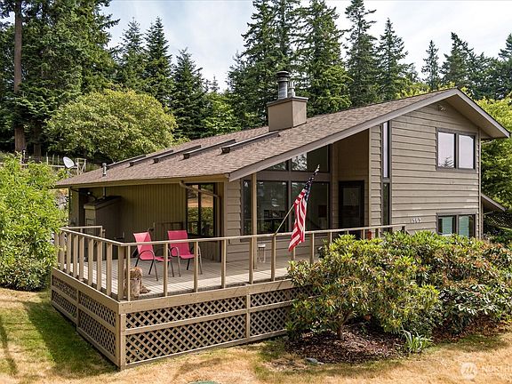 Discover a Whidbey Island retreat designed to embrace both comfort and creativity. This custom Pacific Northwest contemporary offers 3BD/2.5BA across a tri-level layout with flexible spaces including a private office with built-ins, a bonus room, and a studio perfect for hobbies. Soaring vaulted ceilings, skylights, and hardwood floors bring in natural light, while the fireplaces add zoned comfort and character. Energy-conscious systems include a heat pump, hot water recirculating pump, wood double-pane windows, and generator-ready wiring. Step outside to enjoy year-round color with flowering gardens, fruit trees, and a fenced garden ready for your vision. All set against breathtaking views of Saratoga Passage and the Olympic Mountains.