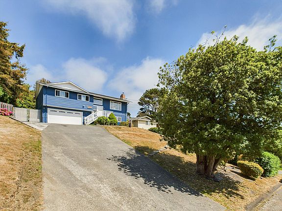 Wow... This one has got it all...ocean views and space! Introducing 1563 Salmon in Mckinleyville is a delight and features, 1992 Sq. Ft., 3 bedrooms, 2.5 baths, living room with woodstove and views of ocean, formal dining with slider doors to spacious deck, remodeled kitchen with hickory cabinets, granite counter tops, stainless steel appliances, ample counter and cabinet space, remodeled primary bath with walk in shower, tile floors, primary suite is large in size with a slider to deck, remodeled guest bathroom, fresh paint and newer carpet. Downstairs you will find a spacious 4th bedroom or Family room with woodstove, laundry room, half bath and a two car garage. Outside you will find patio areas, storage, R.V. parking, garden beds, hot tub and tons of deck space for entertaining!