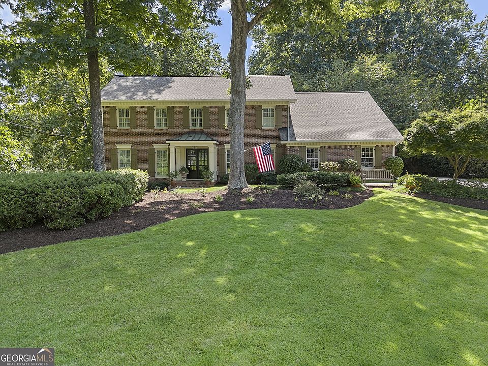 This renovated brick traditional home sits on an expansive and inviting corner lot in the ssought after neighborhood of Withmere/Dunwoody Club Forest West. Ideally located on the start of a cul-de-sac street in the Austin Elementary school district and nearby to Dunwoody Village, Dunwoody Country Club, and the Dunwoody Nature Center, you are just minutes from top area public and private schools, restaurants, retail, green space and swim/tennis amenities. The stone front walkway, custom portico with copper roof and double set of front doors welcome you upon your approach. As soon as one enters the foyer, a dining room on your right is perfectly suited for hosting more formal gatherings while the spacious living and family room on your left is anchored by a stone fireplace and large bay windows overlooking the backyard. The open floor plan of the living space flows seamlessly into the kitchen and breakfast room that boast an expanded footprint. The kitchen is centered around a large eat-in island and is complete with abundant counter space, granite countertops, a tile backsplash and stainless steel appliances, including a gas cooktop and dual ovens. French doors off the breakfast room open to an outdoor oasis that includes both a large deck and huge vaulted screened-in porch for year-round enjoyment. Both spaces are enveloped by beautiful surrounding greenery and overlook the private, serene backyard - and the surround sound system throughout the main level and outdoor spaces allow you to entertain with ease. The main level is complete with an updated powder bathroom and laundry room with custom cabinetry. The upstairs features dual primary suites with ensuite bathrooms, including a custom and private owner's suite that was created by raising the roof and expanding the footprint of the upper level over the garage to create a private and tranquil retreat. The owner's suite bathroom features a dual vanity with marble countertops, travertine floors, custom cabinetry, soaking tub and dual walk-in closets. The secondary primary bedroom features a renovated ensuite bathroom with a frameless shower and the additional two upstairs bedrooms share a hall bathroom that has also been remodeled, ensuring plenty of space for family and guests. The home also features a full, finished daylight basement with a bedroom, full bathroom, large rec room, and unfinished space ideal for storage. Finally, the property boasts a new roof, new windows, new upstairs HVAC unit, updated security system and irrigation/sprinkler system. Situated in a desirable Dunwoody area, this home offers convenient access to shopping, dining, schools, parks, entertainment and easy access to GA 400 and I-285 to get around town with ease. This beloved home has been well-cared for for two decades, and is ready for its new homeowners!