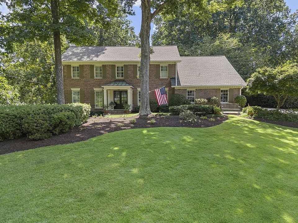 This renovated brick traditional home sits on an expansive and inviting corner lot in the sought-after neighborhood of Withmere. Ideally located on the start of a cul-de-sac street in the Austin Elementary school district and nearby to Dunwoody Village, Dunwoody Country Club, and the Dunwoody Nature Center, you are just minutes from top area public and private schools, restaurants, retail, green space and swim/tennis amenities. The stone front walkway, custom portico with copper roof and double set of front doors welcome you upon your approach. As soon as one enters the foyer, a dining room on your right is perfectly suited for hosting more formal gatherings while the spacious living and family room on your left is anchored by a stone fireplace and large bay windows overlooking the backyard. The open floor plan of the living space flows seamlessly into the kitchen and breakfast room that boast an expanded footprint. The kitchen is centered around a large eat-in island and is complete with abundant counter space, granite countertops, a tile backsplash and stainless steel appliances, including a gas cooktop and dual ovens. French doors off the breakfast room open to an outdoor oasis that includes both a large deck and huge vaulted screened-in porch for year-round enjoyment. Both spaces are enveloped by beautiful surrounding greenery and overlook the private, serene backyard – and the surround sound system throughout the main level and outdoor spaces allow you to entertain with ease. The main level is complete with an updated powder bathroom and laundry room with custom cabinetry. The upstairs features dual primary suites with ensuite bathrooms, including a custom and private owner’s suite that was created by raising the roof and expanding the footprint of the upper level over the garage to create a private and tranquil retreat. The owner’s suite bathroom features a dual vanity with marble countertops, travertine floors, custom cabinetry, soaking tub and dual walk-in closets. The secondary primary bedroom features a renovated ensuite bathroom with a frameless shower and the additional two upstairs bedrooms share a hall bathroom that has also been remodeled, ensuring plenty of room for family and guests. Four spacious walk-in closets also boast generous storage space for the upstairs bedrooms. The home also features a full, finished daylight basement with a bedroom, full bathroom, large rec room, and unfinished space ideal for added storage. Finally, the property boasts a new roof, new windows, new upstairs HVAC unit, updated security system and irrigation/sprinkler system. Situated in a desirable Dunwoody area, this home offers convenient access to shopping, dining, schools, parks, entertainment and easy access to GA 400 and I-285 to get around town with ease. This beloved home has been well-cared for for two decades, and is ready for its new homeowners!