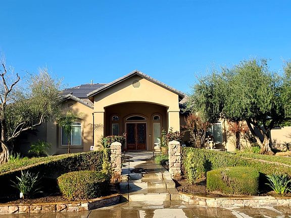 Absolutely fabulous 5 bed + 3 Bath Custom Home on over 1/2 Acre lot. Great home for families and entertaining. Incredible floor plan with Huge master Bedroom with fireplace that is double sided into the master bath with his and hers shower and vanities, spa jacuzzi tub and private toilet. Biggest Master closet. Comes with Safe for your valuables. Beautiful front door entry into the formal living room. Rooms have a variety of options for office, Formal Dining, playroom or home theater. Spacious family room with fireplace opens into the beautifully laid out kitchen and breakfast nook with giant pantry. Very nice Laundry room with lots of cabinetry storage, sink with countertops & comes with front loading washer and dryer. Large swimming pool with cascade waterfalls. Fire Pit. Professional outdoor kitchen with 2 bars and lounge area. Gazebo sitting area with large rock fireplace. SunPower 44 Panel Leased solar with low monthly. Large 3 car garage with driveway parking & RV access.