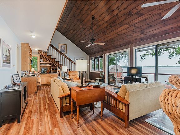 Panoramic viewsOpen layoutComposite sidingSoaring cathedral ceilingCovered boat dockExpansive waterfront deckDeep-water dockage