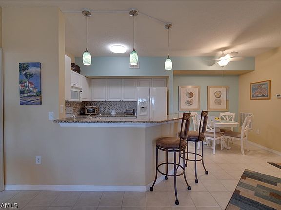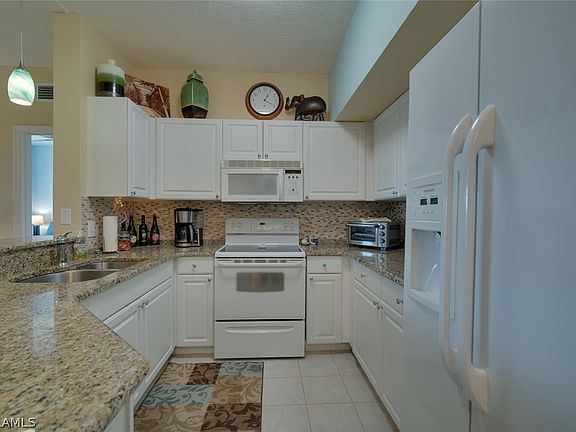 Bright and airy 2 bedroom 2 bath Turnkey condo with your very own garage just below your unit, which is very rare to come up for sale. This unit shows great, Hurricane windows, new wood like (Cortec) laminate flooring, updated bathrooms with granite counter tops, beautiful tile shower in master, great views of the lake, and more. All you need is your toothbrush. New Tile Roof was installed with No Assessment in the future. Conveniently located close to shopping, dining, SW Florida's beautiful beaches, and more. The amenity center at Beachwalk offers a Huge heated Pool, Gym, Library, Billiards, community room, and beach area which is all included in your affordable monthly fees. Please note…there is no lanai/patio