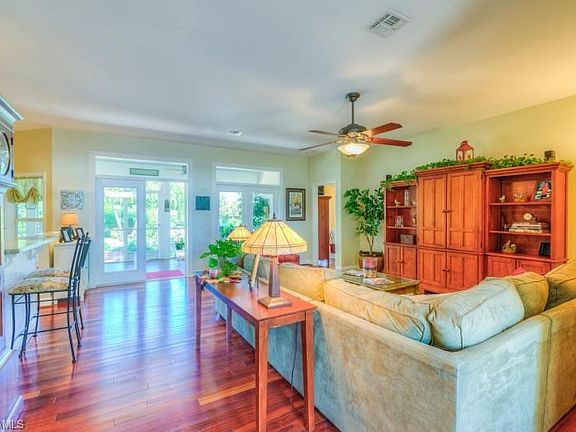 Old Florida style home 3 Bedroom + Den with veranda, screened porch and paver patio is just minutes from the world renowned beaches of Sanibel, Captiva and Fort Myers Beach. Located in a gated community within walking distance of the Caloosahatchee River in a quiet part of Lee County, this family oriented community provides a playground, tennis court, pool and a clubhouse available for large parties. Sidewalks circle the community on both sides of the street. The home has a large, private, tropical backyard for relaxing and where the kids or grandkids can play. It features a large deck and patio with a private fenced back yard. If you choose, a pool could be added for your family enjoyment. Home has an open floor plan for entertaining both inside and out. New Stainless Steel Kitchen Appliances. This home has been lovingly maintained by its original owners. Pets (2) are allowed. The home must be seen if you are interested in quiet family living.
