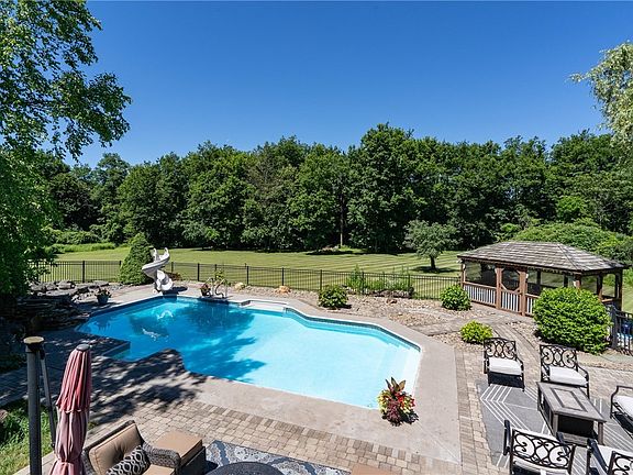 STUNNING CUSTOM HOME IN PRIVATE COUNTRY SETTING!!! This amazing custom built home has been tastefully upgraded and is ready and waiting for its next owner. Sitting on a beautifully landscaped five acre lot, this home boasts 3,700 sq feet of finished living space. Enter into the foyer and you’ll see the gleaming hardwood floors throughout the main level. Two rooms on the first floor are used for home office but could easily be bedroom spaces. High ceilings and tons of natural light in the living room leads into the stunning new kitchen. With custom cabinetry, high end appliances, massive island w/ seating, and quartz countertops, the kitchen is a chef’s dream. Formal dining space and half bath round out main floor. Upstairs you’ll find a sitting area with coffee bar. A nice sized bedroom has its own full bath. But the master suite is the showstopper with walk-in closet/dressing room and spectacular en suite bathroom. The lower level features two more bedrooms with gym area, extra living room, second laundry room, and sliding doors to the backyard oasis. Amazing in-ground pool area with so much space for outdoor entertainment. Make your appointment today to see this masterpiece!!!