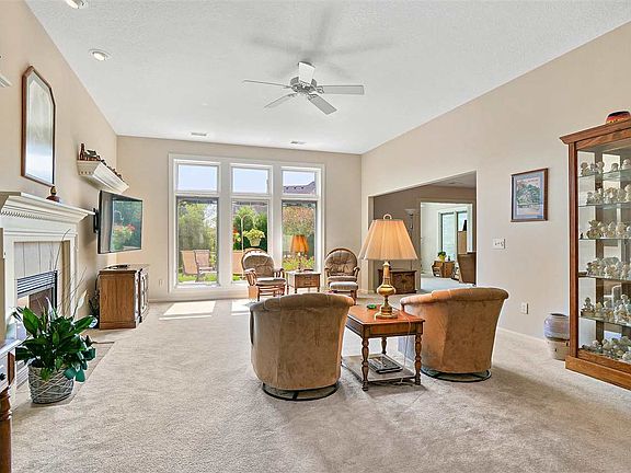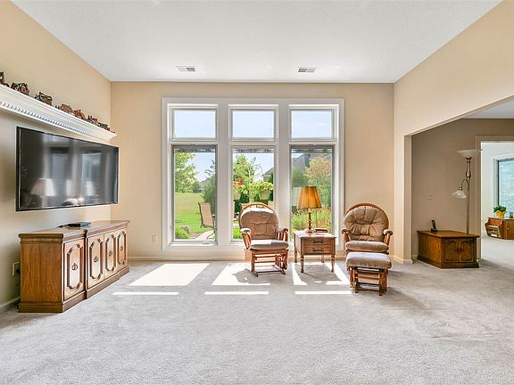 The Villas at Twin Eagles. You've earned it, now come enjoy all that villa living offers! The Luxury life made easy in this 3 bedroom 2.5 bath home with over 2000 square feet of well-appointed living space. Daylight abounds from the oversized triple windows with built in blinds, transoms above, gas fireplace, and display shelves with built in outlets in the 9 ft ceiling great room. Harlan custom cabinetry in the kitchen provides plenty of space and prep area for multiple chefs to enjoy entertaining or daily dining with breakfast bar and breakfast area that leads into the 12 x 12 den/family room with walls of windows and sliding door to the rear of the home. A master bedroom with open views and additional oversized windows enjoys an en suite featuring a dual sink vanity, walk in closet, and stand up shower. Additional 2 large bedrooms are served by the guest bath with tub/shower combo. Convenient laundry room just off the kitchen with it's own window carries the natural light theme throughout the home. Bring your toys or hobbies for the 3 car garage with overhead openers on both doors. Villa association dues include access to the neighborhood pool located in Creekside at Twin Eagles, Tennis court, all lawn mowing and maintenance, snow removal, trash removal, and trimming of bushes and landscaping. Located just North of Gump road and only 10 minutes to Dupont Rd dining and shopping, come see why this house should be your next home!