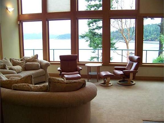 WATERFRONT, NW CONTEMPORARY 100+' of Waterfront..Save on Marina $ by anchoring right off your home! Custom Cabinets & Tile, True NW fireplace w/ vaulted ceiling, West window-wall w/unobstructed views of islands. Main floor Master + your own bank vault or wine cellar. $859,000