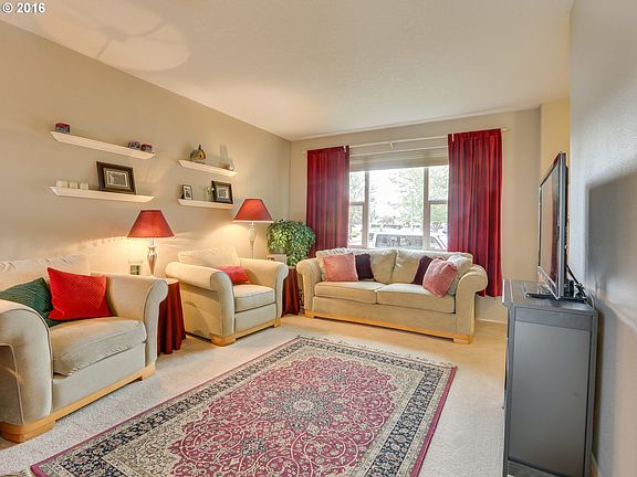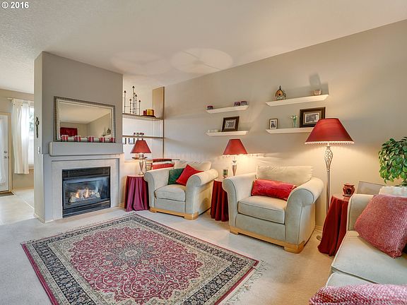 Meticulously maintained 2 Bedroom, 2 Bath Riverview Village Townhome! Convenient location! High ceilings and large windows throughout fill the space with light! Spacious living room with cozy gas fireplace! Open dining room/kitchen with door to patio! Generous master suite with vaulted ceilings and full bath! 2nd bedroom and 2nd full bath up! Laundry on upper level too! Single car garage and assigned parking spot too!