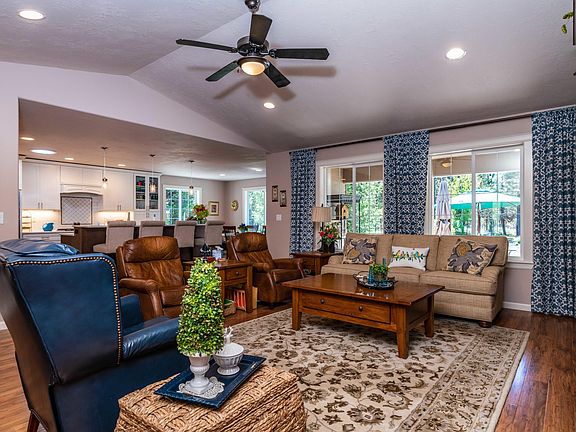 - Breakfast Bar, Master Downstairs, Pantry, Solid Surface Counters, Walk-In Closet(s), Ceiling Fan(s), Jetted Tub, Kitchen Island, Vaulted Ceiling(s), Open Floorplan, Fiberglass Stall Shower