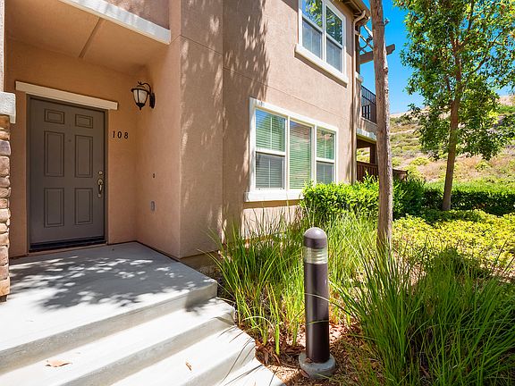 Beautiful condo in a desirable community of Vista Del Lago. D.R Horton built features 3 bedrooms and 2.5 bathrooms with a spacious floor plan. The property conveniently features a 1/2 bath downstairs and the living room is spacious with recessed lighting with a fireplace that is perfect for the Winter nights. The kitchen is perfect in size and features white tile counters tops, recessed lighting, dining area and also leads you to the outside patio. Spacious individual laundry room inside for your convenience. The master bedroom is spacious with a large walk-in closet, private master bathroom and a balcony where you venture outside and enjoy some fresh air of the lovely hillside view. Enjoy the amenities of the association with a sparkling pool, spa, playground and picnic areas. Conveniently located near shopping, restaurants, entertainment and the 15 Freeway.