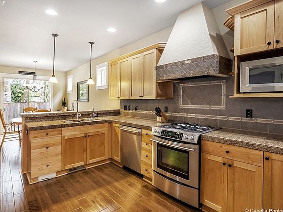 Charming craftsman w/ an unbeatable open concept floor-plan in a fabulous location. Great room w/ gas fireplace, hardwood floors, a darling kitchen w/ updated finishes, granite counters, pantry & stainless steel appliances. Good size bedrooms & bright oversized bonus room upstairs (could be 4th bedrm). Level fully fenced secluded & private turfed backyard which backs up to green space. Great Tigard schools. Minutes to I-5, 217 & LO.