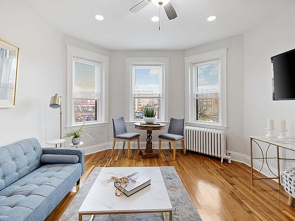 Completely renovated top floor condo in highly desirable Washington Square Condo Association. This front facing unit with bay windows and high ceilings and freshly refinished hardwood floors features an open layout. The large entrance foyer leads into a spacious bedroom with a ceiling fan with a generous closet and living room with new recessed lighting and new windows throughout. Kitchen has quartz countertops and island with eating nook, new GE appliances including gas range/stove, microwave, fridge and disposal. Professionally managed, well maintained with amenities including bike storage and common laundry. Conveniently located - steps to Green Line, Whole Foods, quick access Longwood Medical area, Boston University and Boston College.