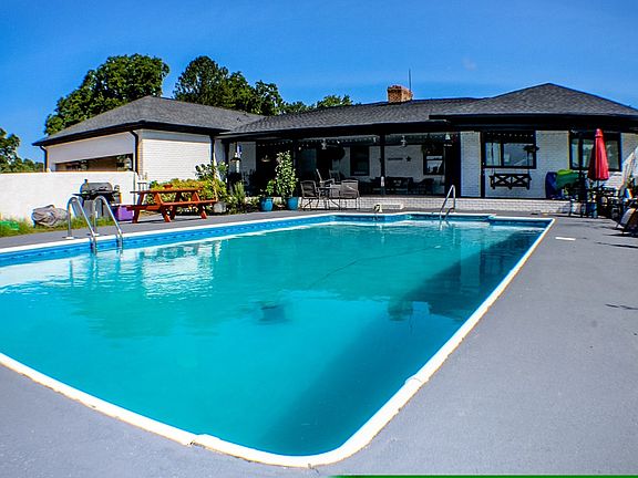 Charming brick farmhouse sitting on 10 gorgeous acres with amazing countryside views! This beautiful full brick home has new LVP flooring throughout the main living space and offers 5 bedrooms all with new carpet and 4 full bathrooms along with a horse barn and a glistening inground pool. The family room offers wooden beams and a fireplace to enjoy. The large kitchen is a baker's dream and has been completely renovated with new ceramic flooring and backsplash with butcher block tops along with a pantry and breakfast nook. Enjoy the spacious master suite with a fireplace and two walk-in closets. Master ensuite has a large double vanity, huge jacuzzi tub, and separate shower. Large room off the master that is perfect for a hot tub and has access to th patio and pool area. Walk right out onto the oversized back patio and pool area. Finished basement with full bath!