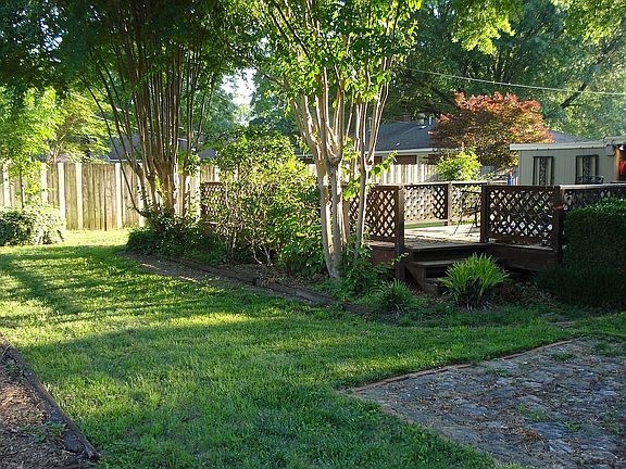 Single family house with 3 bedrooms and 2.5 baths. Plenty of space inside. Outside newly landscaped, trimmed and painted professionally with fenced in back yard. Hardwood throughout except for carpet in master. Hardwood recently refinished and laminate added to living room. Bathrooms renovated. Master bath includes double vanity, separate whirlpool/tub and shower. There is a separate den, dining room, and living room. Neighborhood Description The neighborhood is quiet and safe. It was built in the 1950s. Mature trees around the neighborhood. The neighbors are very friendly. Mostly elderly neighborhood with some younger couples and kids.