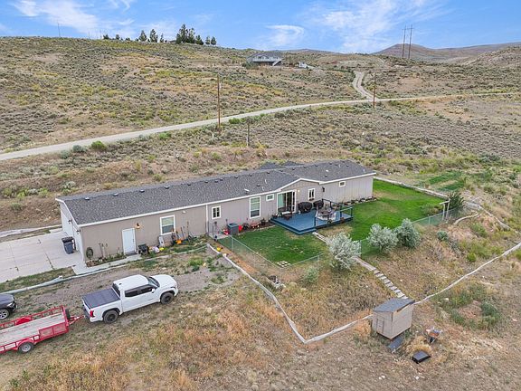 Spacious comfort, Scenic Beauty, and Unmatched Convenience! This stunning 3 Bedroom, 2 Bath home offers over 2300 sq ft of thoughtfully designed living space, featuring two separate living areas and a dedicated home office- perfect for today's flexible lifestyles. The primary suite is a true retreat with a custom oversized tiled shower, dual vanities, & separate water closet in the en-suite bath. The kitchen is completed by an absolutely massive walk-in pantry ideal for storage and organization. Just off the oversized attached garage (of nearly 1100 sq ft!!!) you'll find a smartly designed mudroom equipped with a wash basin and water filtration system-a functional entry point for busy days and outdoor living. Set on 10 acres with a fenced in lawn area on automatic sprinklers this property offers plenty of room to roam while being just minutes from the heart of Elko. Enjoy breath taking Ruby Mountain Views and peaceful surroundings with only a short commute down a well-maintained dirt rd. This home perfectly blends space, privacy, & practicality in a location that keeps you connected without compromising tranquility of country living. Private well (No water bills) Refrigerated AC