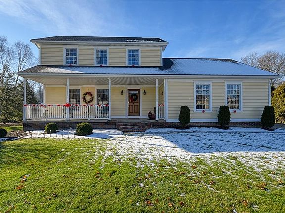 This one owner Springwater Gardens colonial sits on 1.4 aces. The charming porch and huge lot afford its owners country living with close access to all the shopping and dining Hartville has to offer. Newer siding along with all Anderson windows. The first floor offers a formal living room and dining room as well as an eat in kitchen with nice sized hearth room both overlooking the huge backyard. Custom oak trim throughout. The finished rec room is a great spacefor teens or family night surround system is already in place. Upstairs the master suite with an attached master bath offer a private oasis to relax at the end of the day. 3 nice size bedrooms and an additional full bath provide plenty of space for kids and guests. The 2 car attached garage combined with a storage barn offer tons of space for your outdoor equipment and toys. Must see this home to see all it has to offer!