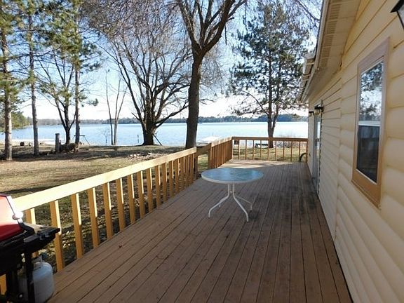 Year-round Lake Home! Great views from the main living area of beautiful Big Bass Lake. Large open kitchen and dining area with walk-in pantry. Three-quarter acre lot with level frontage and dock included. Two-car detached garage. Patio doors lead to the huge deck overlooking the water. Huge deck overlooking the water!