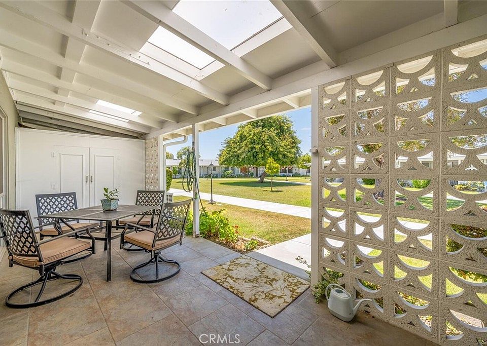 Feel the ocean breezes in this charming one bedroom over looking a lovely greenbelt. Three skylights, laminate flooring throughout, slate tile on the patio. New washer and dryer combo, new dishwasher. Carport#28, Space 55, unit 34J Mutual 2