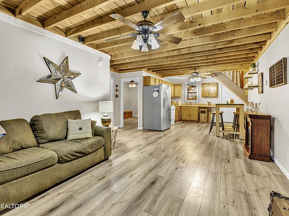 Peaceful Smoky Mountain Home on Nearly 4 Acres! 2 Parcels Total! New HVAC! 3BD/2BA. Welcome to your own private Sevierville retreat! This cabin truly offers the best of both worlds--close to the mountains and the lake! Gorgeous wooded acreage surrounds the home with mature trees, lending a private, secluded setting. Large wrap-around porch offers plenty of places to relax and take in the fresh mountain air. Inside is an open concept main living area and kitchen, featuring luxury vinyl plank flooring and rustic exposed beams, offering a cozy cabin feel. Primary bedroom on the main level features a convenient ensuite bathroom and walk-in closet. Main level bath includes gorgeous pebble stone shower and sleek rubbed bronze fixtures. Upstairs is a flexible loft area--could be used as additional sleeping space, rec room, or kids space. Home sleeps 10 comfortably and could be used as an investment/rental property or as a permanent residence. LOTS of extra storage available downstairs in the unfinished basement. Lower garage access with enough space to fit 2 cars. Well pump was recently replaced. Large horse stables are next door--enjoy the views of your beautiful new ''neigh''bors!! Community dock available for use on Douglas Lake--only half a mile from the house! Less than 20 minutes to interstate access and only half an hour to all the fun attractions that Pigeon Forge has to offer! This home is truly one-of-a-kind! Come check it out TODAY!