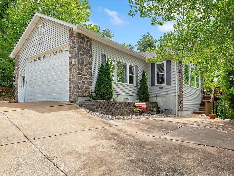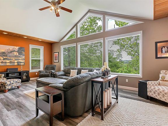 Lake Sherwood MO home with a million dollar seasonal view of the island and sunset! Tons of privacy on just under an acre of wooded land tucked on the hillside with a fairly flat driveway and lots of extra parking! Low maintenance landscaping! Oversized garage and garage door! Gas stove/oven! Fireplace on both levels. Two decks and a patio -sitting areas on all sides of the house. So many updates! Roof 2016, HVAC & A/C 2018, Master bath total remodeled, new grinder pump, new vinyl plank flooring and much more -see update sheet for full list! Lots of personal items are also available. Owners have kept meticulous records and have many items on regular service plans. Lake Sherwood is a gated lake community in Warren County - 15 minutes from Wentzville and Washington with lots of amenities such as: Six lakes, 24/7 security, new pool in 2023, motorized boating, UTV friendly, Campground, Parks, Beach, Clubhouse, Lakeside Grill and fun community activities all year! Come live the lake life! Some Accessible Features
