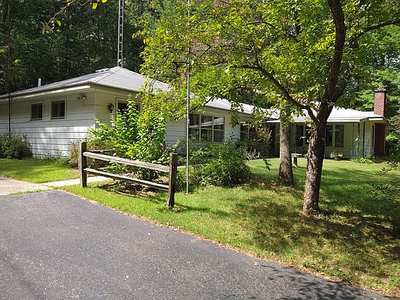 ***20+/- Mostly wooded Acres*** ...3 bedroom 2 bath with basement...This is a ''dated'' but well cared for home featuring large rooms with knotty pine throughout, a fireplace, front & rear facing covered patio/porch, Natural Gas baseboard heating and blacktop driveway from state highway...Located just south of Mio.