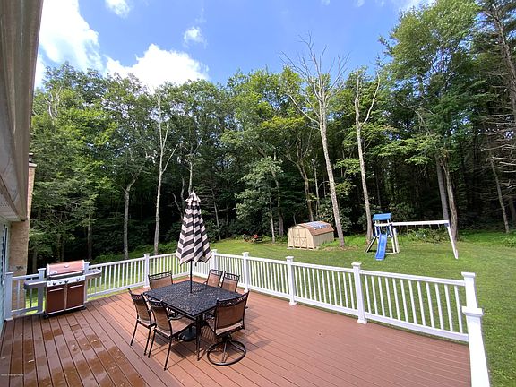 MOVE-IN READY and INCLUDES ''BUYER PREFERRED'' UPGRADED HOME WARRANTY!!!! This beautiful home is nestled in the Poconos in a lovely little development near some of the most popular Pocono attractions! It boasts a large, flat yard ready for you to turn into your own private backyard oasis. Modern Kitchen with Granite Counter Tops & Stainless Steel appliances. NEWLY REMODELED Main Bathroom and Lower Level Family Room!!! NO DUES or HOA FEES and LOW taxes ($3,310.44/year)!! SOLD AS-IS, but with an UPGRADED HOME WARRANTY!!!!! Shed and Swing Set in backyard EXCLUDED