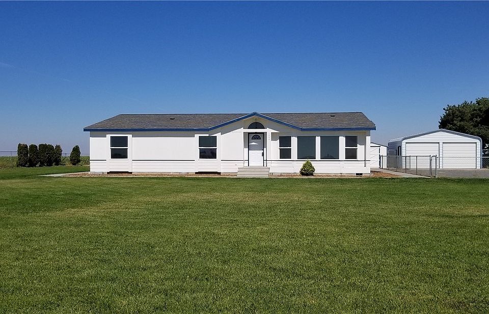 4 bedroom triplewide on one Acre. Home has new carpet and exterior paint. Fully fenced yard with underground sprinklers, large patio, and a sidewalk. Detached 2 car garage, private well, dog run, and a storage shed. Kitchen with island and all appliances. New cooktop stove and hood. Two full baths, and a 1/2 bath off laundry room. Shared ingress/egress with neighbor.